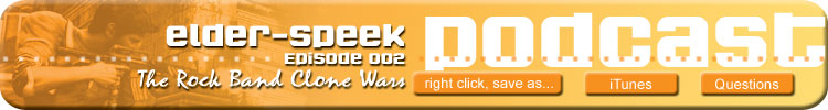 In our second episode we’re joined by Tom and Andrew from Wapeach.com. With them we discuss the games we’ve been playing, relevant news like: Uncharted 2 Multiplayer, Lego Rock Band and Wii Motion Plus. We announce the new site updates that are on the way, and give homage to contest winner Brian Williams for the new podcast name Elder-Speek. Eliot also makes his first appearance in this episode, while Kipp was unfortunately left behind.